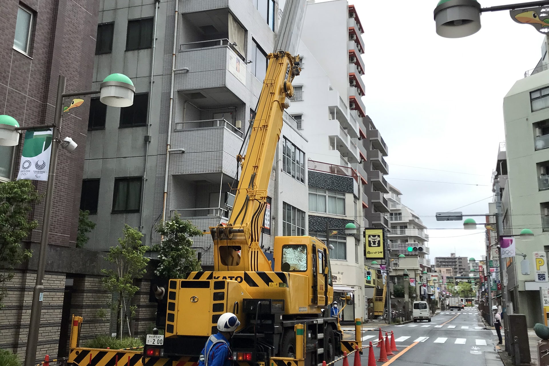 また、工事を行う際、重量物搬入、クレーン手配据付、特別車両通行申請、道路使用申請、誘導員手配、道路車両規制、官庁申請、東京電力申請、主任技術者申請なども行っています。